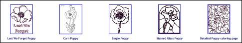activities. Drawings to colour in include: medals, map, poppies, memorial,